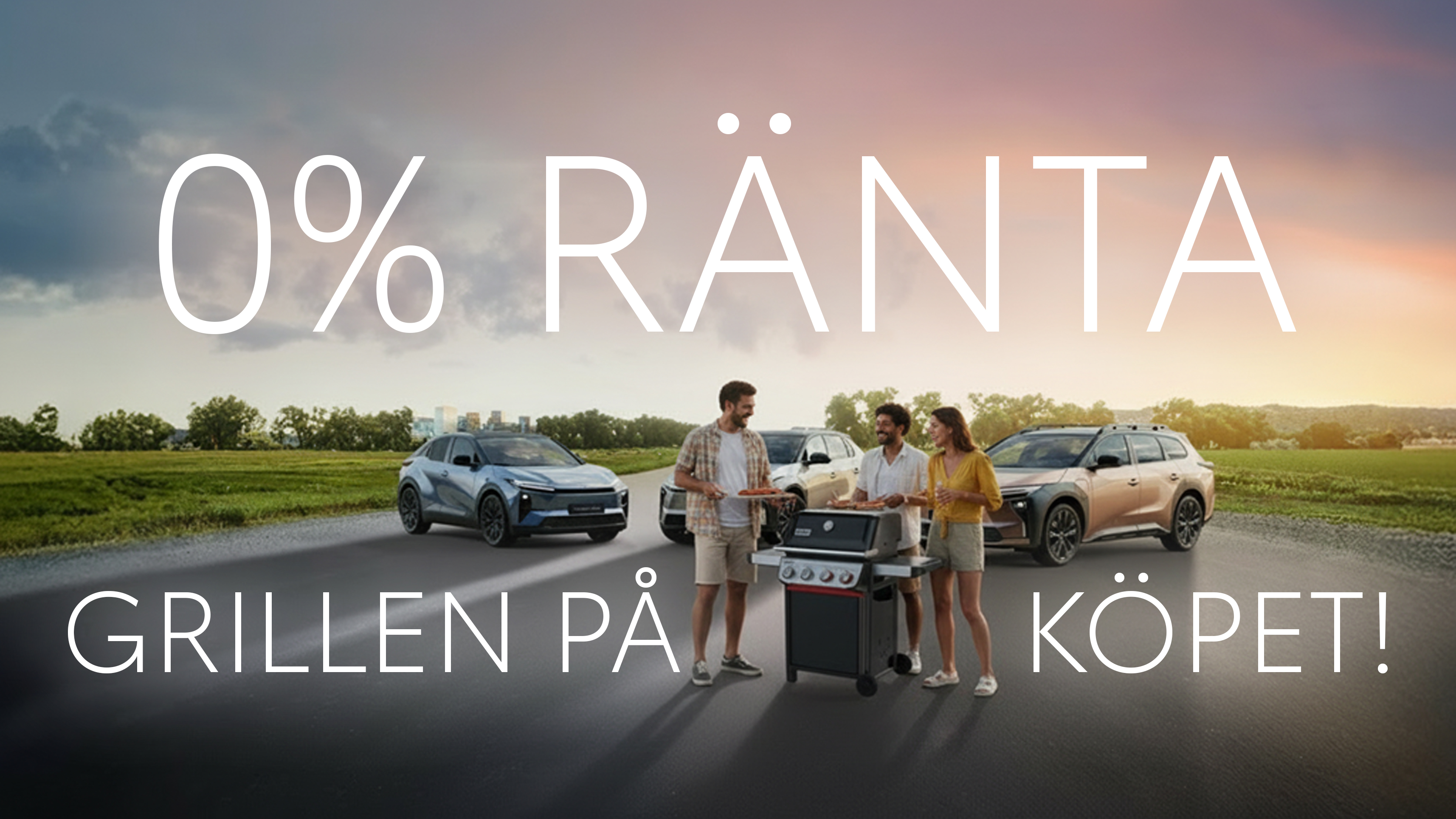 * De 60 första kunderna som köper en ny elbil (bZ4X, bZ4X Touring & Toyota C-HR+) under April månad får en gasolgrill från Weber till ett värde upp till 7.999kr utan kostnad. Kampanjen gäller privatpersoner till och med 30 mars 2026)